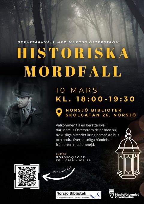 Välkommen till en berättarkväll där Marcus Österström delar med sig av kusliga historier kring hemsökta hus och andra övernaturliga händelser från orten med omnejd.